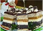 Ciasto orzechowe: białka ubić z cukrem. Dodać żółtka, mąkę z proszkiem, orzechy i wymieszać. Piec w temp. 180'C przez 30 minut.
