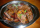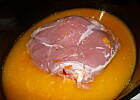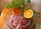 Mięso polać sokiem pomarańczowym i winem, dodać szałwię,liście laurowe i startą skórkę pomarańczy.Przykryć, wstawić do lodówki i pozostawić w tej marynacie na 24 godziny.Uformować wieprzowinę ( za pomocą nici kuchennych), gotować w lekko posolonej mrynacie na małym ogniu,pod przykryciem przez 40 min.Stopić masło, dodać 2 liście świeżej szałwi i osączoną wieprzowinę.Piec przez 40 min jak zwykłą pieczeń, często podlewając przecedzonym sosem.Podawać bardzo gorące z piedzonymi młodymi ziemiakami i udekorowane plastrami pomaranczy.