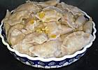 Ciasto rozwałkowuję i wykrawam szklanką kółka, nakładam łyżeczką farsz i sklejam brzegi. Wrzucam na osolony wrzątek z łyżką oleju i mieszam aby się nie posklejały. Łyżką cedzakową wyjmuje pierożka kilka chwil po wypłynięciu i układam na tackę aby wyschły . Z całej porcji wychodzi około 30-35 pierogów.