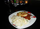 Mięso usmażyć na rumiano. Ułożyć na sosie (można lekko polać sosem).