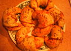 Hmmm smakują trochę jak cebularz, trochę jak pizza... Ciasto w super proporcjach, nie musiałam dosypywać więcej mąki jak w większości przepisów... Zrobiłam z pieczarkami i cebulą. Czego mi brakowało? Czosnku :) Następnym razem zrobię je z czosnkiem, mięsem mielonym, pieczarkami i cebulą :) Bardziej kaloryczna wersja ale co mi tam :) Piekłam znacznie dłużej ok 30-40 min ale to pewnie wina gazowego piekarnika... Ogólnie bardzo dobre i nawet dość szybko się je robi, pomijając czas pieczenia :) A tak wyglądały te, które udało się podkraść aby zrobić zdjęcie :) :