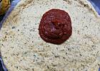 8. Smarujemy ciasto olejem, sosem i kładziemy dodatki.