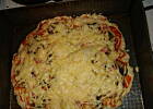 Zostały mi 3 ziemniaki z obiadu,a że nie lubię wyrzucać jedzenia,to trafiło na tą pizzę.Ciasto dobrze się wyrabia,jest bardzo plastyczne,w smaku super.Piekłam 15 minut w 190 st.