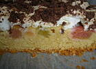 upieklam z brzoskwiniami z puszki ktore wymieszalam z kisielem cytrynowym,ado piany dalam kisiel wisniowy -wyszlo kolorowo i smacznie
