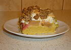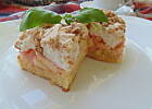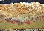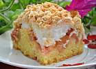 Pyszne ciasto. Świetnia zrównoważony kwaskowy smak rabarbaru ze słodyczą bezy i kruszonki. Polecam.