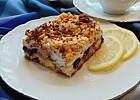 Upieczone ciasto wyjmij z piekarnika i ostudź. Porcjuj po całkowitym ostudzeniu.
