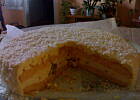 Fajny przepis. Zrobiłam małą wariację na podstawie tego przepisu: upiekłam biszkopt wg własnego przepisu z dodatkiem kisielu pomarańczowego, masę II umieściłam w środku a do masy I nie dodałam pralin i obłożyłam nią wierzch ciasta. Smakowało wszystkim, ale mi najbardziej bo uwielbiam wszystko co pomarańczowe i cytrynowe . A tak to wyglądało