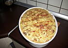 Pory umyć, pokrajać w półplasłerki. Pieczarki umyć, obrać i też pokrajać w półplasłerki. Parówki obrać z osłonek i pokrajać w krążki. Ser zetrzeć na tarce. Rozdrobnione pory podsmażyć na rozgrzanym oleju, dodać pieczarki i parówki, smażyć ok. 10 min. Następnie przełożyć do żaroodpornych kokilek, zalać śmietaną wymieszaną z surowym jajkiem, przyprawić do smaku, a po wierzchu posypać utartym na tarce żółtym serem. Wstawić do nagrzanego do temperatury 200°C piekarnika i zapiec. Podawać jako danie samodzielne z grzankami z chleba lub ugotowanymi ziemniakami. Można też podawać zapiekankę jako gorącą przekąskę.
