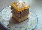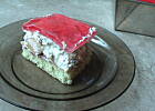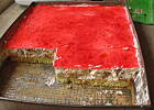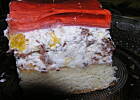 Krem jak dla mnie w smaku był trochę mdły,dlatego wkropiłam do niego soku z połowy cytryny.Ciasto wyszło w smaku rewelacja.Użyłam galaretki wiśniowej,co widać na załączonym zdjęciu obok innego ciasta