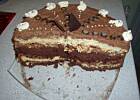 Twój tort zrobiłam w formie ciasta, na górę dałam polewę czekoladową... Jest naprawdę przepyszny!! Moi rodzice byli szczególnie zachwyceni (nawet mój wybredny ojciec), a i reszta gości się oblizywała.. do kremu dodałam jeszcze kilka pokrojonych średnio drobno czekoladek, żeby trochę chrupało :) a czekoladek użyłam z Aldi (bardzo dobre, paczka 300gr za 9,90). Pozdrawiam!