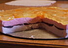 w standardowej postaci,druga warstwa pianki a gdy całość zastygła :owoce i czwarta galaretka.Polecam bo całość bardzo smaczna!