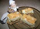 Ja robię jabłecznik z gruszką - wychodzi super i wygląda bardzo fanie. Najpierw ciasto, na to podsmażone jabłka, na jabłka układam równo gruszki pokrojone w duużą kostkę. pomiędzy gruszki układam rodzynki i orzechy - po jednym równo. Na to kawałeczki ciasta, pianę z białek wymieszna z kiślem i znowu kawałeczki ciasta. Pyszne i ładne.