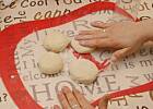 Po drugie, konsystencja ciasta jest luźna i jest to właściwa konsystencja. Po wyrośnięciu, ciasto wyłóż partiami na lekko oprószoną mąką powierzchnię. Rozgniatamy, np. dłońmi (nie gnieciemy, jak prania), tylko równamy na grubość 4 cm a następnie szklanką wycinamy. Jeśli bawisz się w wałkowanie, ciasto oprósz mąką, połóż na to folię spożywczą i dopiero wałkuj. Wycięte pączki odkładamy na oprószoną tackę. Dłonie smarujemy olejem, lub oprószamy mąką przy rozgniataniu ciasta. To powinno ułatwić przygotowanie pączków i skutecznie zapobiega wtłaczaniu niepotrzebnej mąki. Luźne ciasto = puszyste, lekkie pączusie, gęste ciasto (lub ugniecione) = zbite, ciężkie, pełne pączek (toną w oleju w pierwszych 2-3 sekundach).