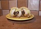 Ciężko mu było wydrążyć nożem z całego jabłka, więc zrobiłam połówki.Otulilam ciastem,w środku wydrążenia dałam łyżeczkę marmolady śliwkowej. Do ciasta dodałam cynamonu i wanilii, natomiast cukru ujęłam.Pieklam pół godziny w 200 st na termoobiegu.Rewelacyjne jabłuszka
