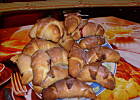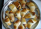 Blaszkę wykładamy papierem i układamy rogaliki. Możemy je posmarować rozbełtanym jajkiem, ale nie jest to konieczne. Po ułożeniu czekamy około 10-15 minut, żeby jeszcze troszkę urosły. :)
