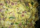 Tym razem troche poeksperymentowalam i zamiast szynki dodalam kiszonego ogorka, a zamiast szczypiorku pora,tez dobra ale z szynka znacznie lepsza.