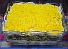 Warstwy mozna układać i doprawiać dowolnie. Ważne aby na górze był majonez i żółtka.Sałatkę można przygotować dzień przed podaniem.
