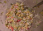 Sałatka świetna i smaczna. Nawilżona odpowiednio a dałam tylko 2 łyżki majonezu. Dodałam jeszcze pieczarki konserwowe.