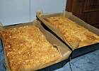 Tłuszcz z cukrem utrzeć, dodać żółtka i mąkę wymieszaną z proszkiem do pieczenia. Ciasto podzielić na dwie części (2/3 + 1/3): większą wyłożyć blaszkę a mniejszą włożyć do zamrażarki.