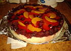 Zrobiłam sernik wczoraj :) dodałam śmietanę 30% i nie dawałam żelatyny. Staram się jej nie dodawać bo po prostu nie lubię, zamiast tego użyłam dwóch rozpuszczonych galaretek do masy serowej. Na początku masa zrobiła się bardzo wodnista więc włożyłam ją do lodówki, żeby trochę stężała. Odczekałam jakieś ok.30 minut i zrobiła się już taka zwarta i dopiero wtedy ją przelałam do tortownicy :) na to puszka brzoskwiń i prawie cały koszyczek malin :) i wygląda jak poniżej :) wszystkim bardzo smakuje :) polecam przepis!