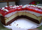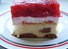 Truskawki zmiksować. Dodać cukier, jeśli masa jest zbyt kwaśna. Masę truskawkową połączyć z tężejącą galaretką, wyłożyć na kremówkę.