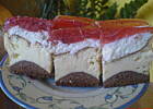 Masę śmietanową rozsmarować na upieczonym i wystudzonym serniku.