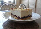 Bardzo dobry serniczek :) Trochę mi polewa nie wyszła, ale posypałam całość prażonymi płatkami migdałów i wyszło super, a ta żurawina PYCHA ! Polecam :)