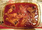 Pocięte skrzydełka przyprawić przyprawą do kurczaka lub vegetą /ja daję trochę tego i tego/, obtoczyć w mące ziemniaczanej i podsmażyć przez chwilę na dużym ogniu aż zrobi się lekko chrupiąca skórka. Następnie ułożyć w brytfance i zalać sosem, nie przykrywać bo w czasie pieczenia sos musi trochę odparować.