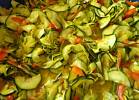 Pakujemy sałatkę do słoików, dokładnie ugniatamy. Dolewamy marynaty, w której macerowały się warzywa. Słoiki zakręcamy. Pasteryzujemy 5-6 minut od momentu zagotowania.