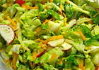 Sos przygotować wg przepisu podanego na opakowaniu lub przyrządzić samemu, mieszając odrobinę wody, oliwy, octu, soli, pieprzu i cukru. Połączyć z surówką. Dodać także przeciśnięty przez praskę ząbek czosnku, oraz opcjonalnie nieco świeżego koperku.