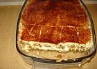 4. Wyłóż na ciastka połowę kremu i oprósz przez sitko połową kakao. Ułóż drugą warstwę nasączonych ciastek, przykryj resztą kremu. Teraz deser przez co najmniej 5 godzin musi zastygać w lodówce. Dopiero przed podaniem posyp tiramisu resztą kakao. Gdy deser mocno stężeje, pokrój go na 8-10 kawałków i już na stole nakładaj łopatką. Gdyby nie dał się kroić, nakładaj łyżką. Może nie wygląda to zbyt efektownie, ale na smaku nie traci.