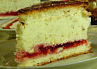 Pozostałą tężejącą galaretkę wylać na spód ciasta i przykryć drugim krążkiem.
