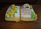 Biszkopta do takiej księgi robię z podwujnej porcji składników na biszkoptU mnie blaszka 40/28.Potem kroję go na trzy części.Przygotowuje krem(najczęściej bita śmietana)ponczuje biszkopta,smaruje kolejne warstwy.Kształtuje księgę,po jej środku wycinam "rowek"a brzegi kształtuje na księgę.Wiem,że to może wszystko prosto brzmi-ale troche cierpliwości-i wszystko sie uda.Jakby co to prosze o dalsze,konkretne pytania