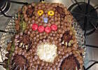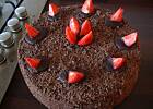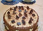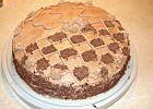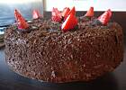 IV. Biszkopt dzielimy na 3 części. Pamiętajmy, aby górną część dać w środek, a środkową na górę! Nasączamy odpowiednią ilością ponczu każdą część, smarujemy powidłami, nakładamy krem. Wierzch i boki tortu smarujemy kremem. Na koniec posypujemy wierzch i boki czekoladą z lodówki (!), startą na tarce. Wkładamy do lodówki.