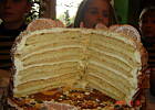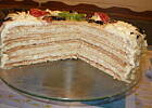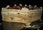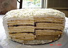Przylaczam sie do zychwytow nad tym wspanialym tortem.Zrobilam go na 18 urodziny syna.Goscie byli zychwyceni,jubilat tez.Mialam troche nerwowke z tym czy zmieknie odpowiednio,wyszlo mi tylko 8 plackow, sredniej grubosci.Przelozony kremem tort stal ok 22 godziny czekajac na degustacje.Na szczescie zmiekl odpowiednio,nastepnym razem lekko nasacze placki zeby uniknac stresu.Smak:DOSKONALY.A wagladal tak: