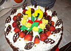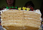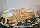 Zrobione!Zjedzone!Trochę się namęczyłam,ale warto było.Wszystkim gościom tort bardzo smakował,a tak się bałam,że nie wyjdzie.Placki wyszły mi chyba za grube i za twarde,dlatego wolałam nasączyć je w mleku(twoja teściowa musi być mistrzynią skoro wychodzi jej 16szt.),druga masa wyszła mi za rzadka i chyba się zważyła,jedynie masa śmietanowa była ok.Był to mój pierwszy tort jaki robiłam. Mimo wpadek w trakcie robienia efekt końcowy był całkiem niezły.Myślę,że następnym razem pójdzie mi lepiej.A oto moje dzieło.