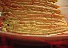 Sugerując się komentarzami przełożyłam go również co 3 placek dżemem z czarnej porzeczki,ale uważam,że było to zupełnie zbyteczne dlatego,że tam właśnie się rozwarstwiał przy przekładaniu na talerzyk,
