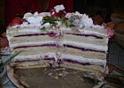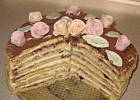 Wczoraj upiekłam ten tort. Bardzo ciekawy przepis i wyjatkowy smak. Upieke go jeszcze raz na komunie wnuczka.a tak wygladał. ciut za krótko był przykryty kremami i nie zdążył porzadnie nasiaknąć. Mimo to był wyjątkowy.Troche czasochłonny, ale WARTO!Dziekuje za wspaniały przepis.