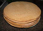 Upiekłam na tortownicy 28cm-wyszło mi 13 placków,jednak skorzystałam tylko z 10 placków i wyszła mi pełna tortownica.Dałam też więcej cukru waniliowego,również do spodów.