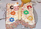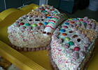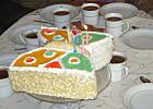 Super pomysł - co można zrobić ze zwykłego torta. Biszkopt i krem zrobiłam z własnych przepisów, a wierz udekorowałam kolorowymi wiórkami kokosowymi. Serdeczne dzięki za pomysł. A oto co mi wyszło: