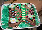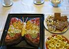 Dzięki za pomysł dotyczący tortu. Zrobiłam krem wg własnego przepisu, a spodów użyłam gotowych. Nie mogłam tylko znaleźć w żadnym sklepie śliwek do czułek, więc nasz motyl wyglądał bardziej na poczwarkę ;)