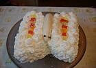 Pomysł na kształt torcika świetny. Co prawda robi lam z innym kremem, ale gościom sam kształt się bardzo podobał.