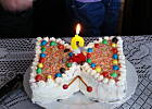 oto kolejny tort mojego syna - Bartka, troszeczkę go popodcinaliśmy by bardziej przypominał kształtem motyla. Na razie bez banana bo dodamy go dopiero jutro :)