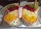 jjbocianki !!!! Jaki cudny powiedz z czego jest ta dekoracja widze brzoskwinie kiwi bitą śmeitanę a te brązoewa wypełnienia ???/ czy to jest galaretka zalane ???
