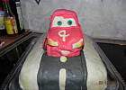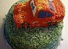 z masy cukrwej robimy droge. wałkujemy mase na długość tortu i szerokość autka.Kładziemy droge na tort, srodek smarujemy masą, odcinamy wystajy wafelek i kładziemy na droge samochodzik