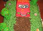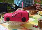 Dekorujemy auto poszczególnymi masami,zostawiając krem czerwony na koniec.