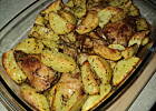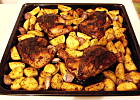 Zrobiłam to danie już 2 razy i wszystkim bardzo smakowało.Udka wcześniej zamarynowałam; z ziemniakami zrobiłam to samo tylko leżały krócej w marynacie ( 2 godziny). Ponieważ udka były bardzo duże a i kartolelków było sporo- więc zamieszałam je w połowie pieczenia.Surowych składników było prawie 4 kilogramy , więc musiałam piec prawie 2 godziny. Dzięki za przepis