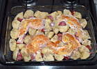 Robię podobnie, tylko ziemniaki kroję w plastry, wtedy jest się pewnym,że nie będą surowe, a kurczaka doprawionego(na noc)obs