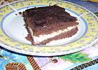 Ciasto: Margarynę utrzeć z cukrem pudrem i żółtkami, dodać kakao rozmieszane w gorącej wodzie na papkę, utrzeć, a następnie dodać przesianą mąkę z proszkiem do pieczenia, na końcu dodać ubite jajka i lekko wymieszać. Ciasto wyłożyć na blaszkę dobrze wysmarowaną tłuszczem i wyłożoną papierem. Piec w średniogorącym piekarniku ok. 25 minut. Upieczony placek ostudzić.
