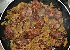 Przelozyc cebule na inne naczynie,dodać na patelnie jeszcze odrobinę tłuszczu i ostrożnie wylozyc wątróbkę do smażenia ( wątróbka ma tendencje do tzw ,,strzelania,, na patelni).Podsmażyć wątróbkę z każdej strony,dodac podsmażona wcześniej cebule,i dusić jeszcze ok 10 minut pod przykryciem. Solić i pieprzyc dopiero przed podaniem,gdyż wątróbka twardnieje po dodaniu soli w trakcie smażenia.